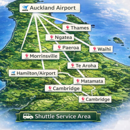 · 1 small carry-on (up to 7kg)· 1 large suitcase (up to 25 kg)· Extra or large items? That’s okay—just tell us in advance so we can plan for space. No surprise charges if you communicate early.Child Travel Policy· Children under 5 ride free with a parent or guardian.Airport Timing TipsAirport Timing Tips • When scheduling your pickup time for a flight, you can choose what works best for you. However, we strongly recommend allowing extra time for potential traffic or unexpected delays—especially during peak travel hours. Please see suggested times below• Please note: TAPS Shuttle Service is not responsible for unexpected road delays such as traffic accidents or other unforeseen events. We appreciate your understanding and encourage planning ahead for a smooth journey. If not sure about the time to allow, please give us a ring or email and we will give you a recommended pick-up time.Where to Meet at Auckland Airport· After clearing customs, turn left and head to the pre-booked shuttles meeting point. Look for your driver holding a sign with your name.· If you don’t spot them, wait near the Vodafone or Spark store, and give us a call or text.Safety & Comfort· Please wear your seat-belt during the trip—it’s the law in NZ.Got questions? We're just a message away. Thanks for choosing TAPS Shuttle Services—we look forward to getting you where you need to go, safely and on time!